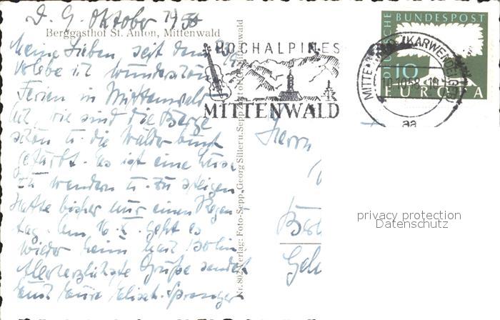 72076013 alte Postkarte Mittenwald Karwendel Tirol Berggasthof St Anton Alpenpanorama postalisch gelaufen Erhaltung siehe scans KatCode: 11390335070926