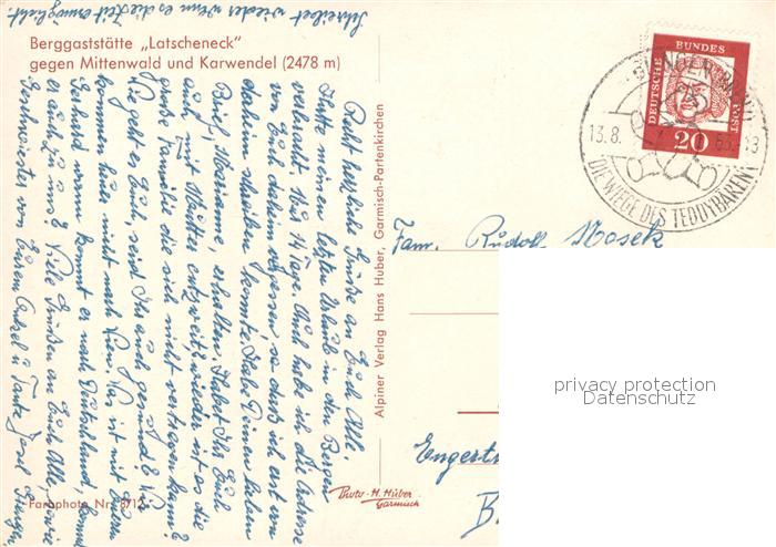 72931516 alte Postkarte Mittenwald Karwendel Tirol Berggaststaette Latscheneck postalisch gelaufen Erhaltung siehe scans [KathaD81] KatCode: 11390335070926
