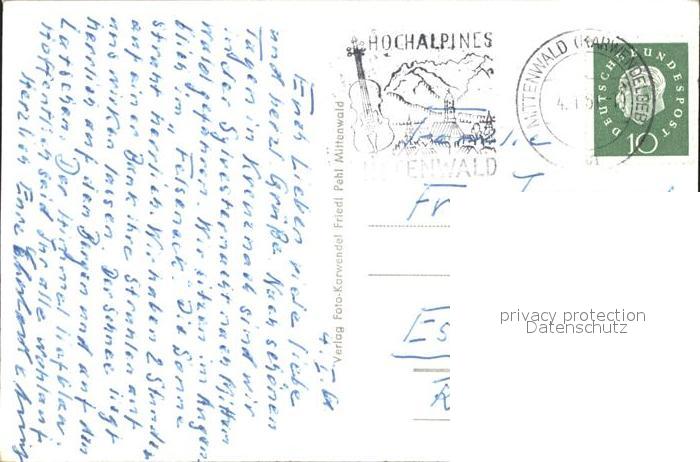 72197815 alte Postkarte Mittenwald Karwendel Tirol Dorfmotiv postalisch gelaufen Erhaltung siehe scans KatCode: 11390335070926