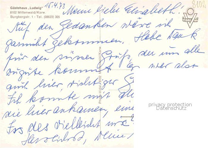42613933 Mittenwald Karwendel Tirol Gaestehaus Ludwig postalisch nicht gelaufen Erhaltung siehe scans [AndreD76] KatCode: 11390335070926