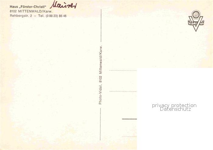 12757815 Mittenwald Karwendel Tirol Haus Foerster Christl postalisch nicht gelaufen Erhaltung siehe scans [AndreD76] KatCode: 11390335070926