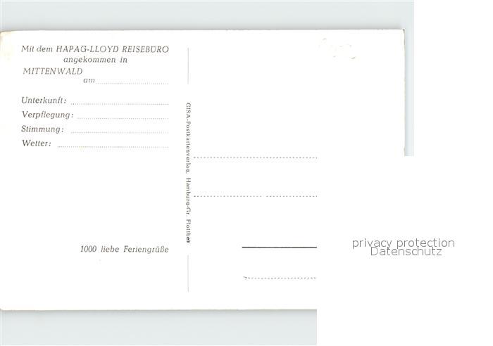 72014528 Mittenwald Karwendel Tirol Hotelterrasse postalisch nicht gelaufen Erhaltung siehe scans KatCode: 11390335070926