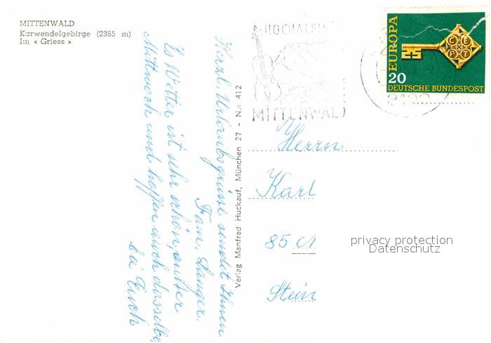 72760930 alte Postkarte Mittenwald Karwendel Tirol Im Gries postalisch gelaufen Erhaltung siehe scans [FriedD77] KatCode: 11390335070926