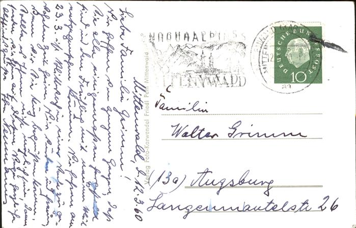 71063015 alte Postkarte Mittenwald Karwendel Tirol Karwendel postalisch gelaufen KatCode: 11390335070926