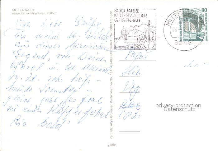 72455294 alte Postkarte Mittenwald Karwendel Tirol Karwendelgebirge Woerner Viererspitze postalisch gelaufen Erhaltung siehe scans KatCode: 11390335070926