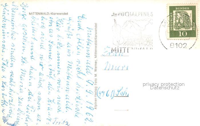 73101265 alte Postkarte Mittenwald Karwendel Tirol Obermarkt Pfarrkirche postalisch gelaufen Erhaltung siehe scans [KathaD81] KatCode: 11390335070926