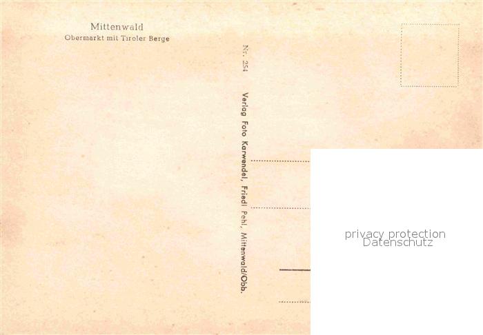 72623540 Mittenwald Karwendel Tirol Obermarkt postalisch nicht gelaufen Erhaltung siehe scans [NatalD47] KatCode: 11390335070926