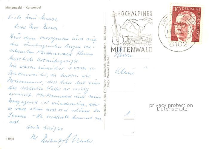 73129923 alte Postkarte Mittenwald Karwendel Tirol Panorama Kirche postalisch gelaufen Erhaltung siehe scans [KathaD81] KatCode: 11390335070926