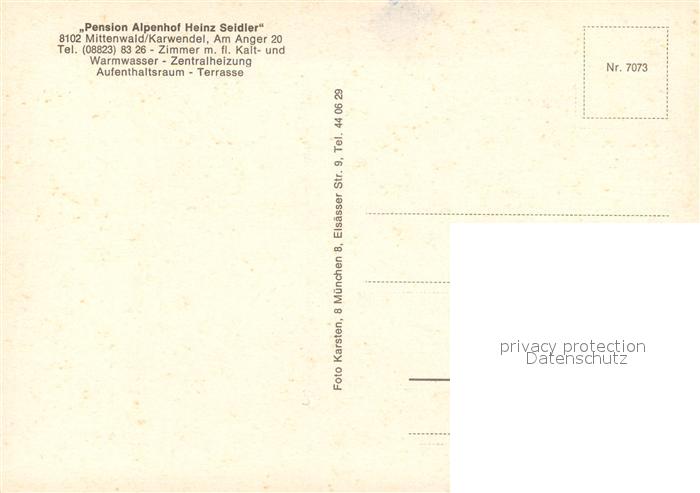 13325661 Mittenwald Karwendel Tirol Pension Alpenhof Heinz Seidler KatCode 11390335070926