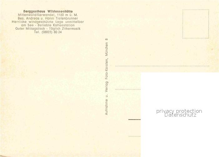72796860 Mittenwald Karwendel Tirol Wildenseehuette Berggasthaus postalisch nicht gelaufen Erhaltung siehe scans [KathaD81] KatCode: 11390335070926