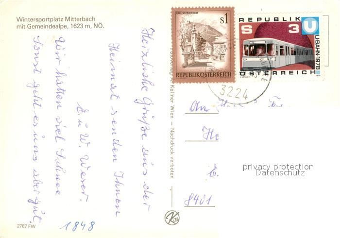 73005729 alte Postkarte Mitterbach Erlaufsee mit Gemeindealpe postalisch gelaufen Erhaltung siehe scans [WerneD78] KatCode: 11390122031408
