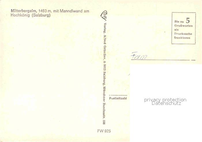 72849280 Mitterberg Neumarkt Mitterbergalm Manndlwand Hochkoenig postalisch nicht gelaufen Erhaltung siehe scans [KathaD81] KatCode: 11390226061412