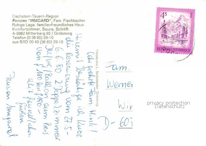 72900577 alte Postkarte Mitterberg Steiermark Pension Irmgard Panorama postalisch gelaufen Erhaltung siehe scans [FriedD77] KatCode: 11390222061225
