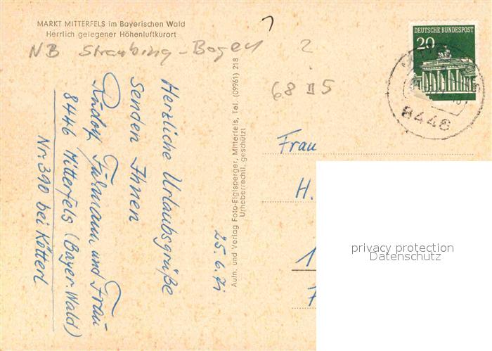 72905971 alte Postkarte Mitterfels Teilansicht postalisch gelaufen Erhaltung siehe scans [AndreD76] KatCode: 11110009278151