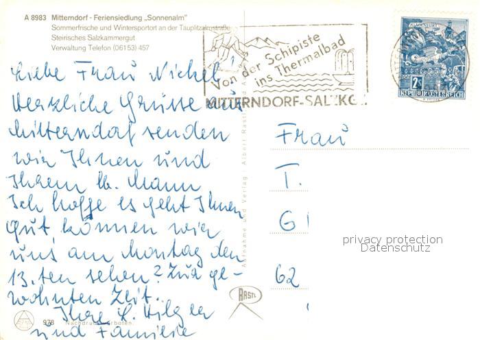 73204158 alte Postkarte Mitterndorf Bad Feriensiedlung Sonnenalm postalisch gelaufen Erhaltung siehe scans [NatalD47] KatCode: 11390222061226