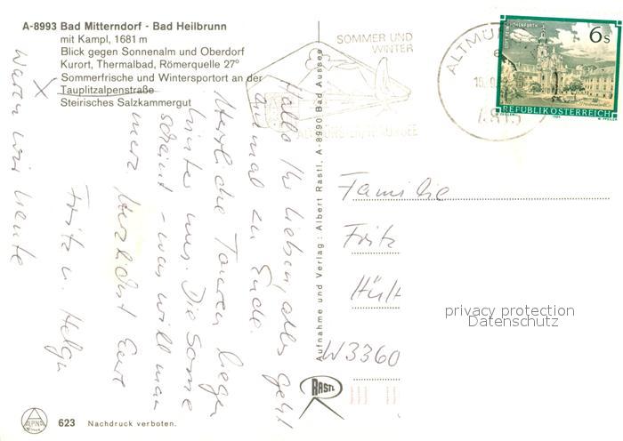 73049238 alte Postkarte Mitterndorf Bad Fliegeraufnahme Kampl Sonnenalm postalisch gelaufen Erhaltung siehe scans [KathaD81] KatCode: 11390222061226