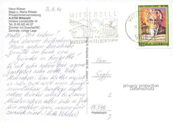 74096065 alte Postkarte Mittersill Oberpinzgau AT Haus Wieser postalisch gelaufen Erhaltung siehe scans [WerneD78] KatCode: 11390322050613