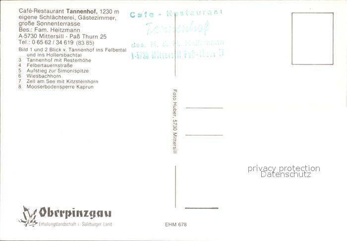 72495882 Mittersill Oberpinzgau Cafe Restaurant Tannenhof Pass Thurn Felbertauernstr Siminispitze Wiesbachhorn Zell See Mooserbodensperre postalisch nicht gelaufen Erhaltung siehe scans KatCode: 11390322050613