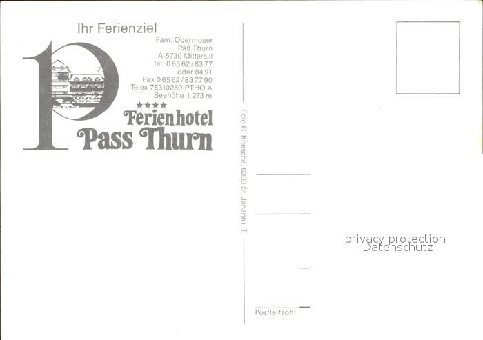 72052629 Mittersill Oberpinzgau Ferienhotel Pass Thurn postalisch nicht gelaufen KatCode: 11390322050613