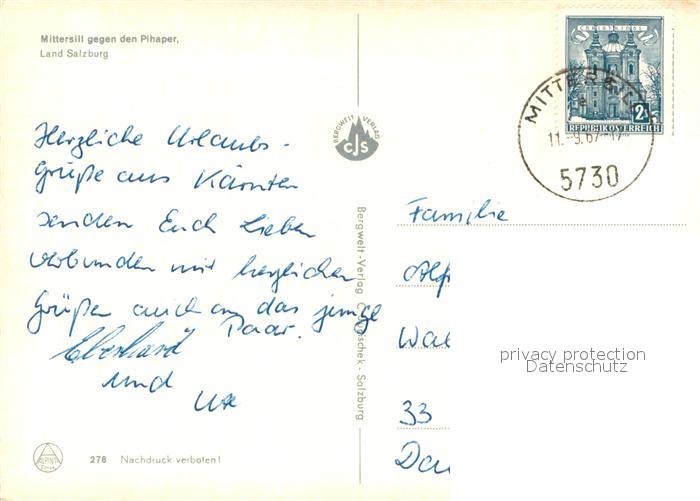 73707218 alte Postkarte Mittersill Oberpinzgau Fliegeraufnahme mit Pihaper postalisch gelaufen Erhaltung siehe scans [WerneD78] KatCode: 11390322050613