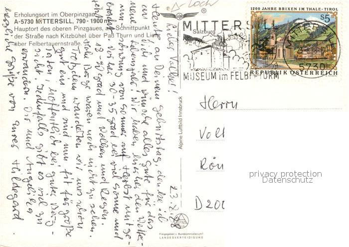 73112042 alte Postkarte Mittersill Oberpinzgau Fliegeraufnahme Schloss Pass Thurn postalisch gelaufen Erhaltung siehe scans [NatalD47] KatCode: 11390322050613