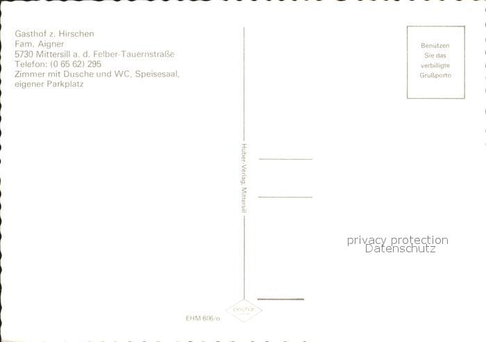 72287784 Mittersill Oberpinzgau Gasthaus zum Hirschen postalisch nicht gelaufen Erhaltung siehe scans KatCode: 11390322050613