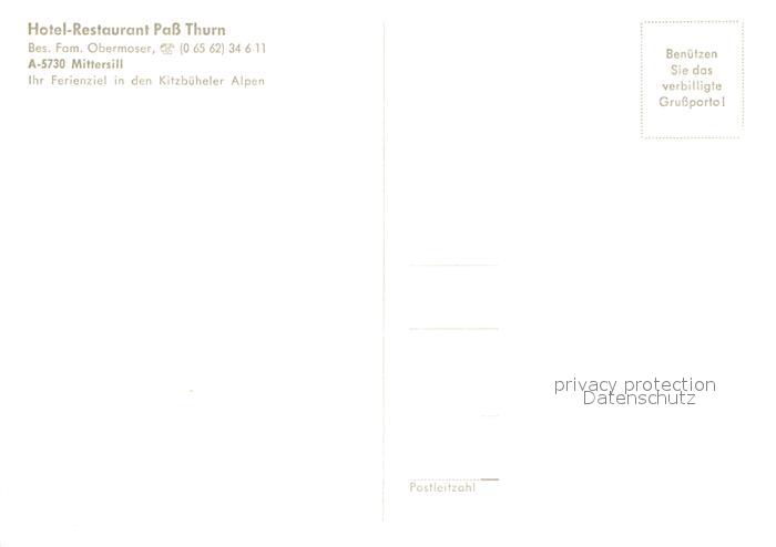 13005060 Mittersill Oberpinzgau Hotel Pass Thurn postalisch nicht gelaufen Erhaltung siehe scans [NatalD47] KatCode: 11390322050613
