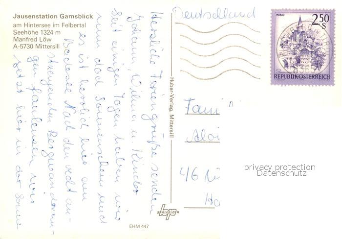 73235505 alte Postkarte Mittersill Oberpinzgau Jausenstation Gamsblick am Hintersee im Felbertal postalisch gelaufen Erhaltung siehe scans [WerneD78] KatCode: 11390322050613