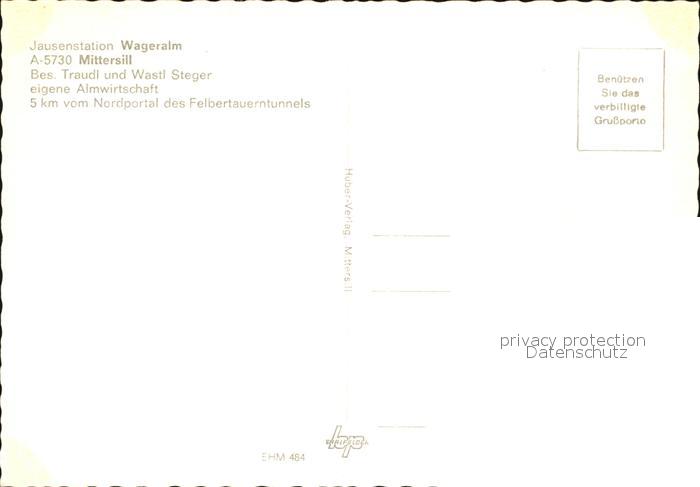 72500775 Mittersill Oberpinzgau Jausenstation Wageralm Almwirtschaft Felbertauerntunnel Alpen postalisch nicht gelaufen Erhaltung siehe scans KatCode: 11390322050613