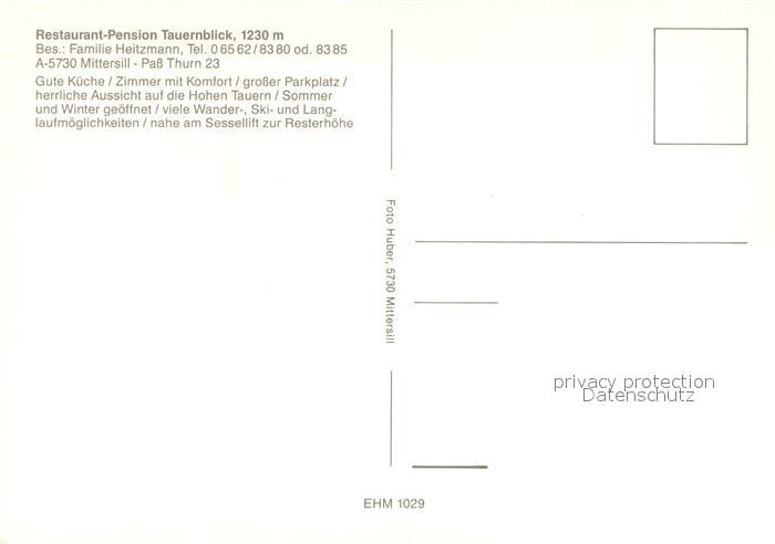 73713276 Mittersill Oberpinzgau Restaurant Pension Tauernblick Pass Thurn postalisch nicht gelaufen Erhaltung siehe scans [WerneD78] KatCode: 11390322050613