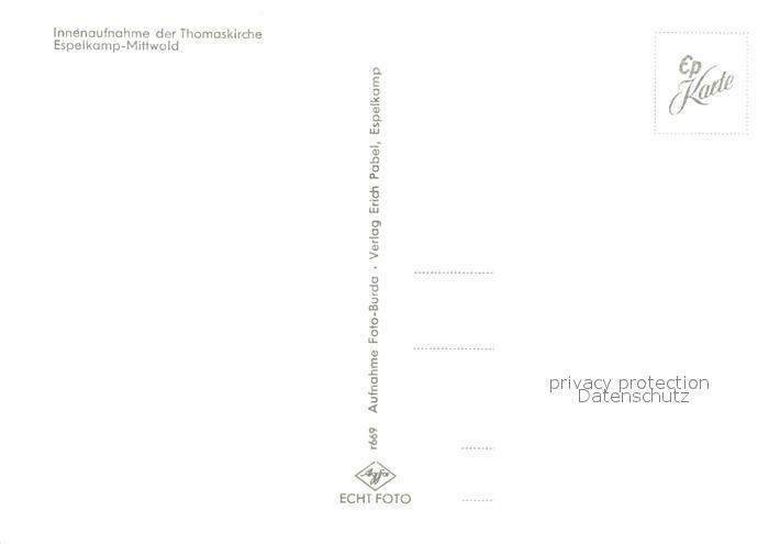 73335958 Mittwald Espelkamp Innenaufnahme der Thomaskirche postalisch nicht gelaufen Erhaltung siehe scans [FriedD77] KatCode: 11110005770008
