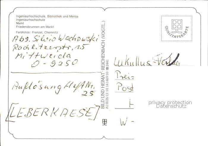 72529139 alte Postkarte Mittweida Ingenieurhochschule Markt Friedensbrunnen postalisch gelaufen Erhaltung siehe scans KatCode: 11110014182280
