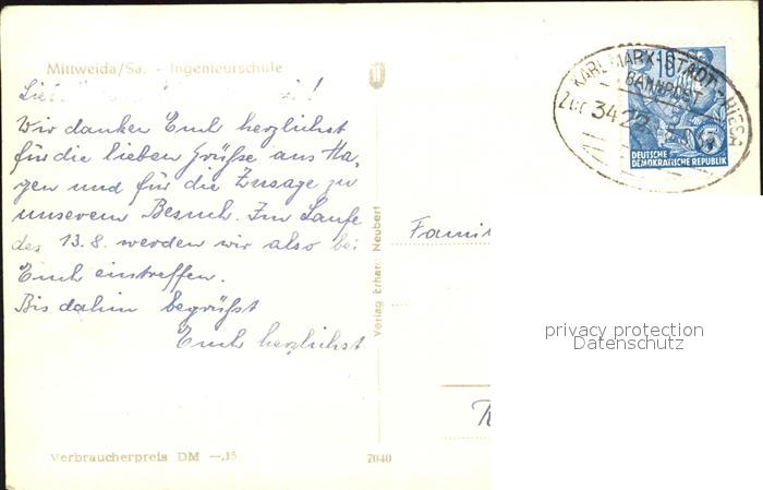 72401669 alte Postkarte Mittweida Ingenieurschule postalisch gelaufen Bahnpost Erhaltung siehe scans KatCode: 11110014182280