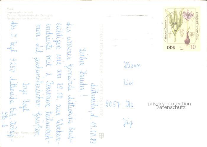 72373156 alte Postkarte Mittweida Markt Ingenieurhochschule OT Neudoerfchen Zschopau Naubauten Bahnhofsvorplatz postalisch gelaufen Erhaltung siehe scans KatCode: 11110014182280