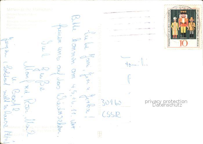 72372486 alte Postkarte Mittweida Markt Ingenieurhochschule Postmeilensaeule postalisch gelaufen Erhaltung siehe scans KatCode: 11110014182280