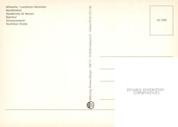 72958585 Mittweida Markt Kirche St. Marien Bahnhof Rochlitzer Strasse postalisch nicht gelaufen Erhaltung siehe scans [PaolaD17] KatCode: 11110014182280