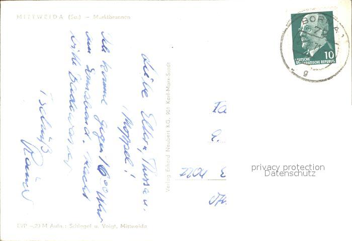 72053350 alte Postkarte Mittweida Marktbrunnen postalisch gelaufen KatCode: 11110014182280
