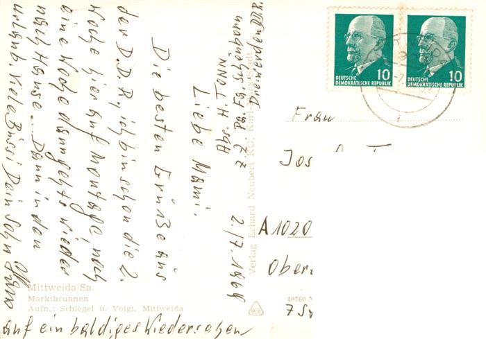 73905547 alte Postkarte Mittweida Marktbrunnen postalisch gelaufen Erhaltung siehe scans [WerneD78] KatCode: 11110014182280