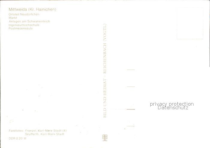 72371496 Mittweida Ortsteil Neudoerfchen Markt Anlagen am Schwanenteich Postmeilensaeule postalisch nicht gelaufen Erhaltung siehe scans KatCode: 11110014182280