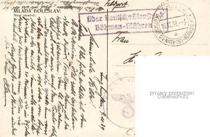 33707845 old postcard Mlada Boleslav Jungbunzlau Nove namesti postalisch gelaufen Feldpost – Stempel Erhaltung siehe scans [WerneD78] KatCode: 11520