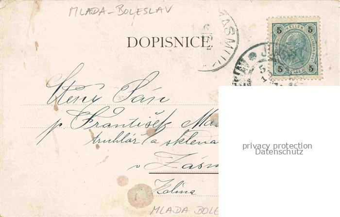 74098529 old postcard Mlade Boleslavi Jungbunzlau CZ Gebaeude Stadtpanorama im Mondschein Altstadt postalisch gelaufen Erhaltung siehe scans [FriedD77] KatCode: 11410