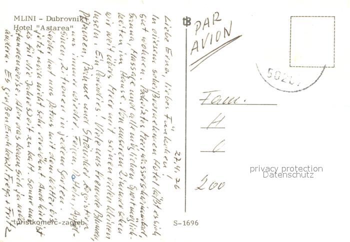 old postcard Mlini Hotel Astarea postalisch gelaufen Erhaltung siehe scans [WerneD78]