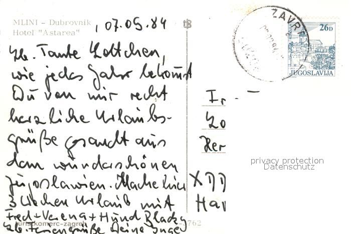 old postcard Mlini Hotel Astarea postalisch gelaufen Erhaltung siehe scans [NatalD47]