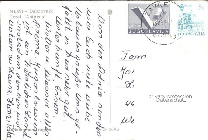 old postcard Mlini Hotel Astera postalisch gelaufen Erhaltung siehe scans