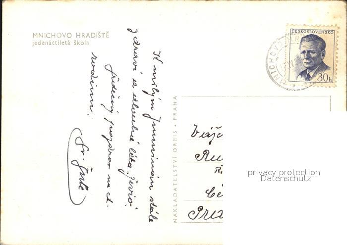 12446061 old postcard Mnichovo Hradiste Jedenactileta skola postalisch gelaufen Erhaltung siehe scans KatCode: 11520