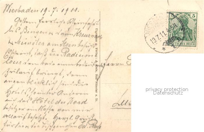 43491479 alte Postkarte M?nster Stein Ebernburg Bad Reingrafenstein postalisch gelaufen Erhaltung siehe scans [LiesaD40] KatCode: