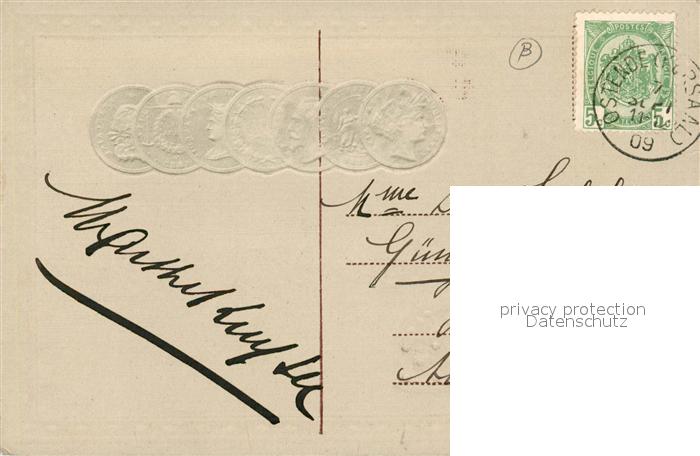 33567569 alte Postkarte M?nze auf Ak W?rfel postalisch gelaufen Erhaltung siehe scans [PaolaD17] KatCode: