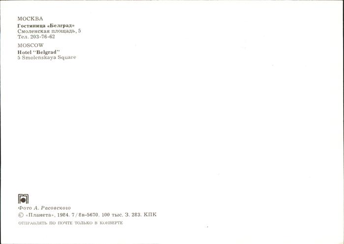 Mockba Moscow Hotel Belgrad postalisch nicht gelaufen Erhaltung siehe scans