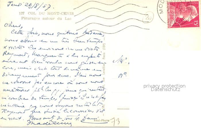 13486791 carte postale Modane Col du Mont Cenis Pâturages autour du Lac postalisch gelaufen Erhaltung siehe scans [FriedD77] KatCode: 11170073373157