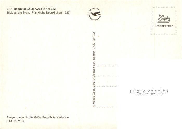 73644725 Modautal Ev Pfarrkirche Neunkirchen Fliegeraufnahme postalisch nicht gelaufen Erhaltung siehe scans [WerneD78] KatCode: 11110006432013